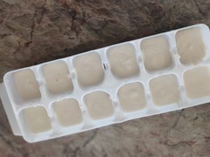 ממלאים תבנית קוביות קרח ומקפיאים(בשביל המילקשייק)